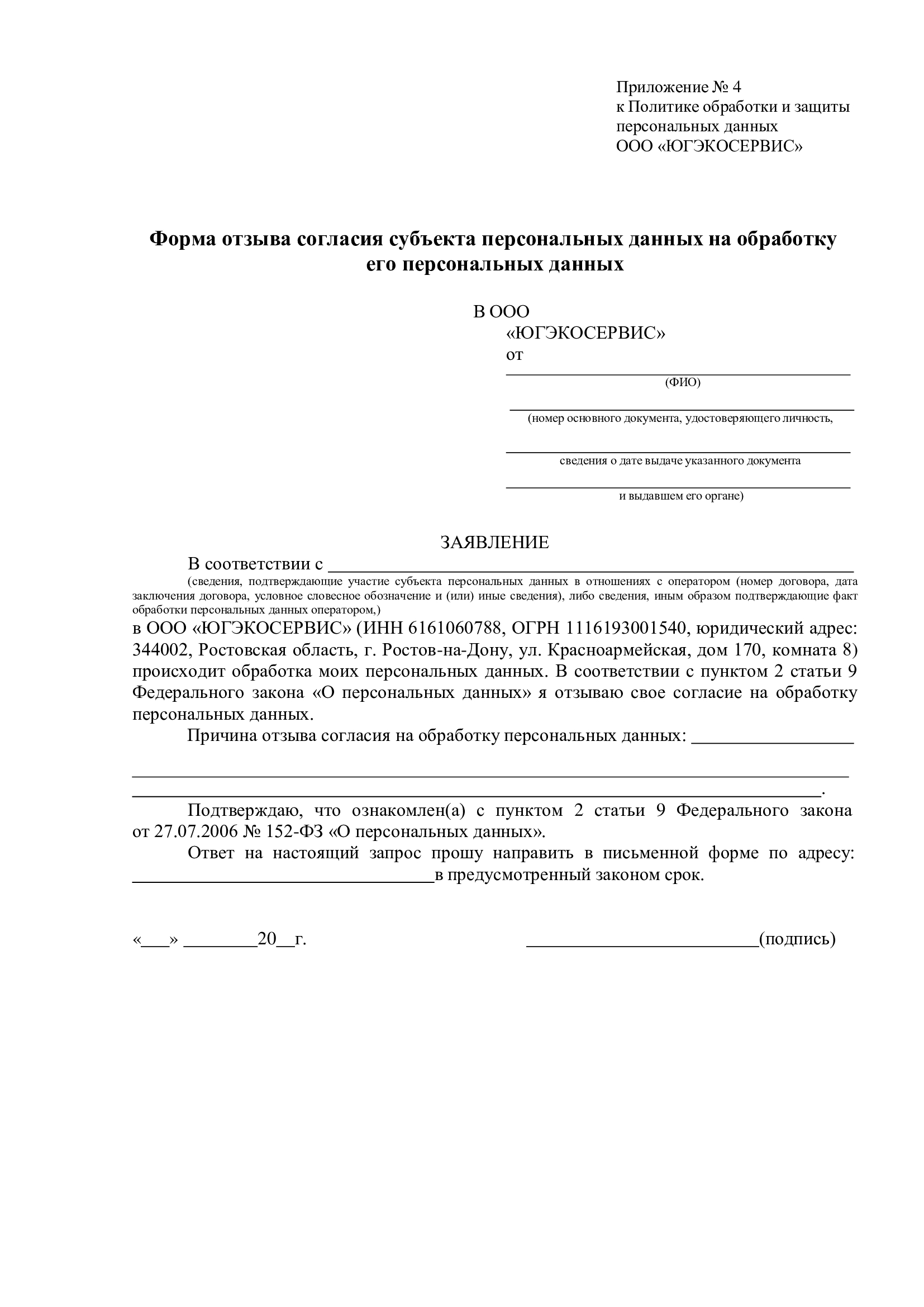 1.5.9. Прекращать обработку персональных данных в случае отзыва субъектом согласия на их обработку. Общество сохраняет право на продолжение обработки персональных данных без согласия субъекта при наличии оснований, предусмотренных пп. 2–11 ч. 1 ст. 6, ч. 2 ст. 10 и ч. 2 ст. 11 Федерального закона от 27.07.2006 № 152-ФЗ «О персональных данных».